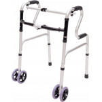 Rolators for adults can be placed in a separate category. They are distinguished by the presence of wheels on all four supports, there are brakes on the handles. Also, some models have seats for resting during long walks.