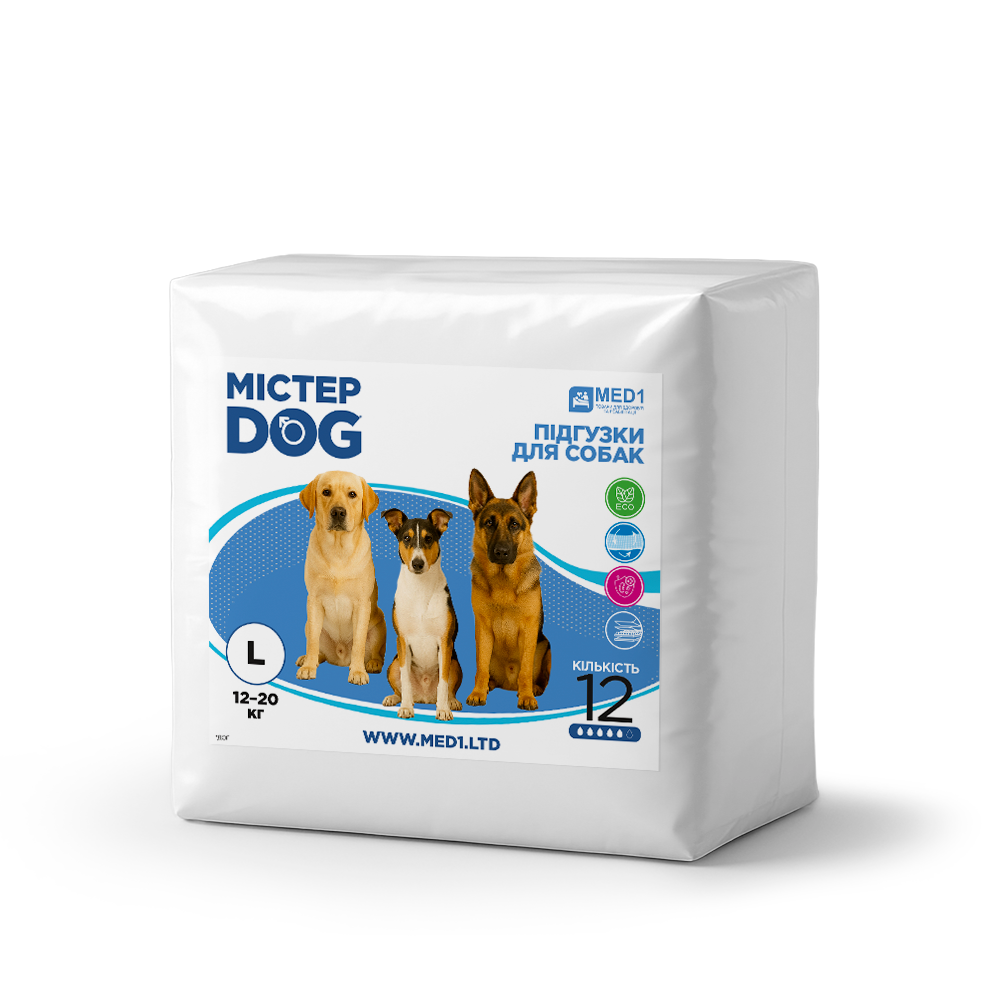 Mister Dog diapers in size L are designed for medium and large breed dogs weighing 12–20 kg. They are a practical and hygienic solution for everyday pet care in various life situations.
