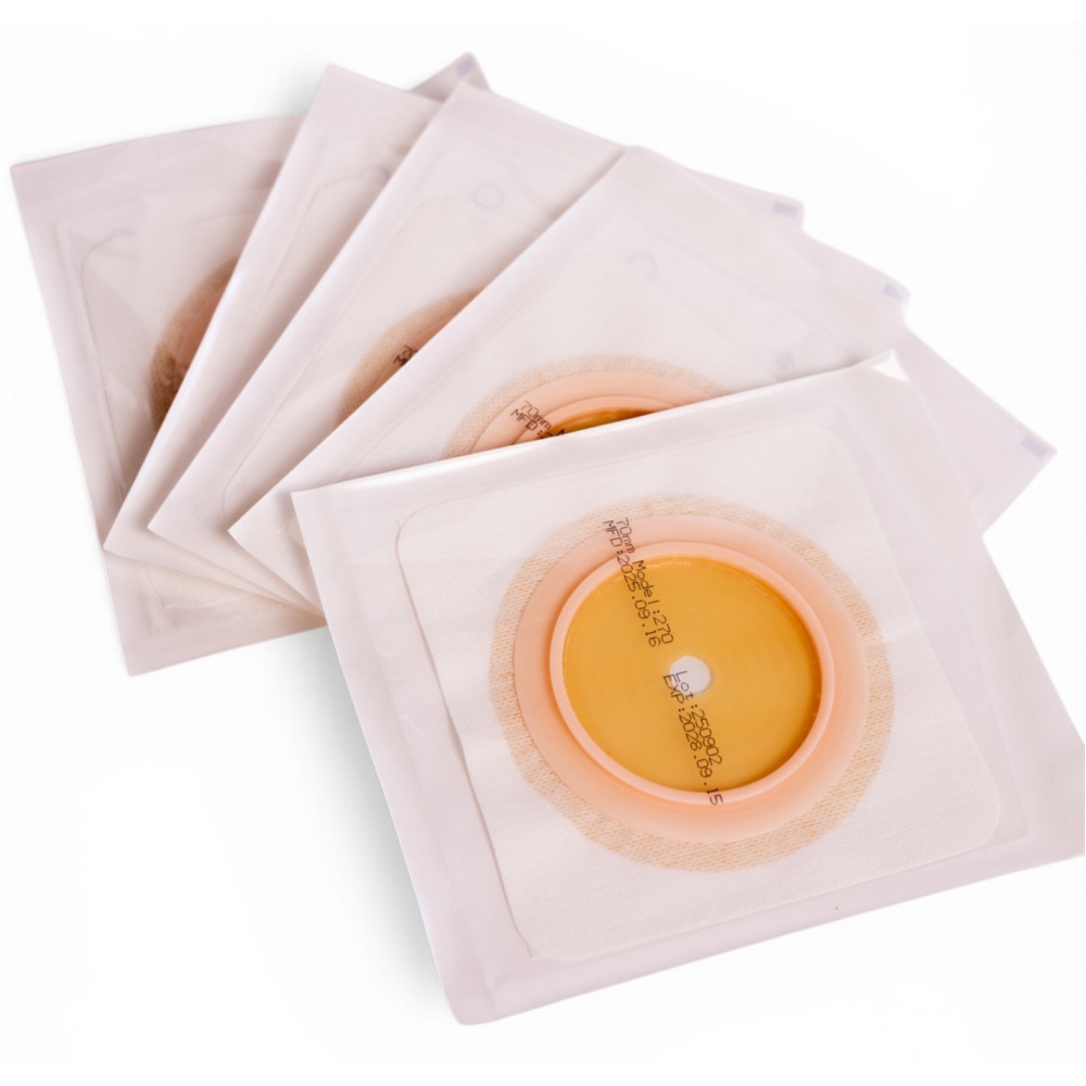 Пластина (фланец) MED1-B-70 — это компонент двухкомпонентной системы для стомированных пациентов, предназначенный для крепления калоприемников или уростомных мешков с диаметром фланцевого соединения 70 мм.