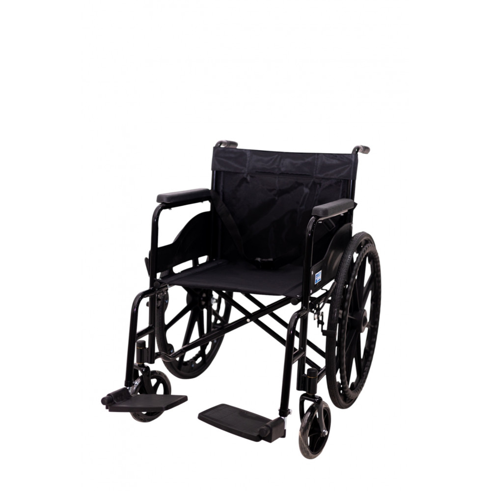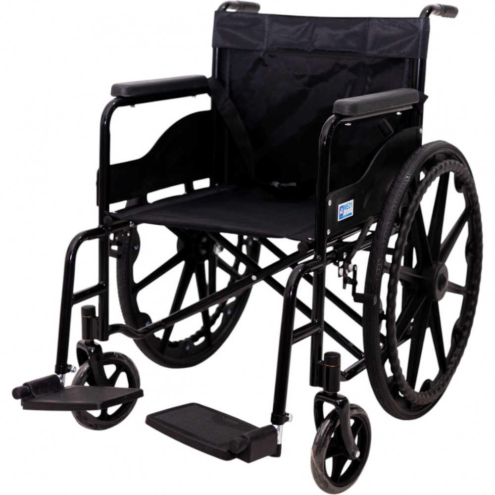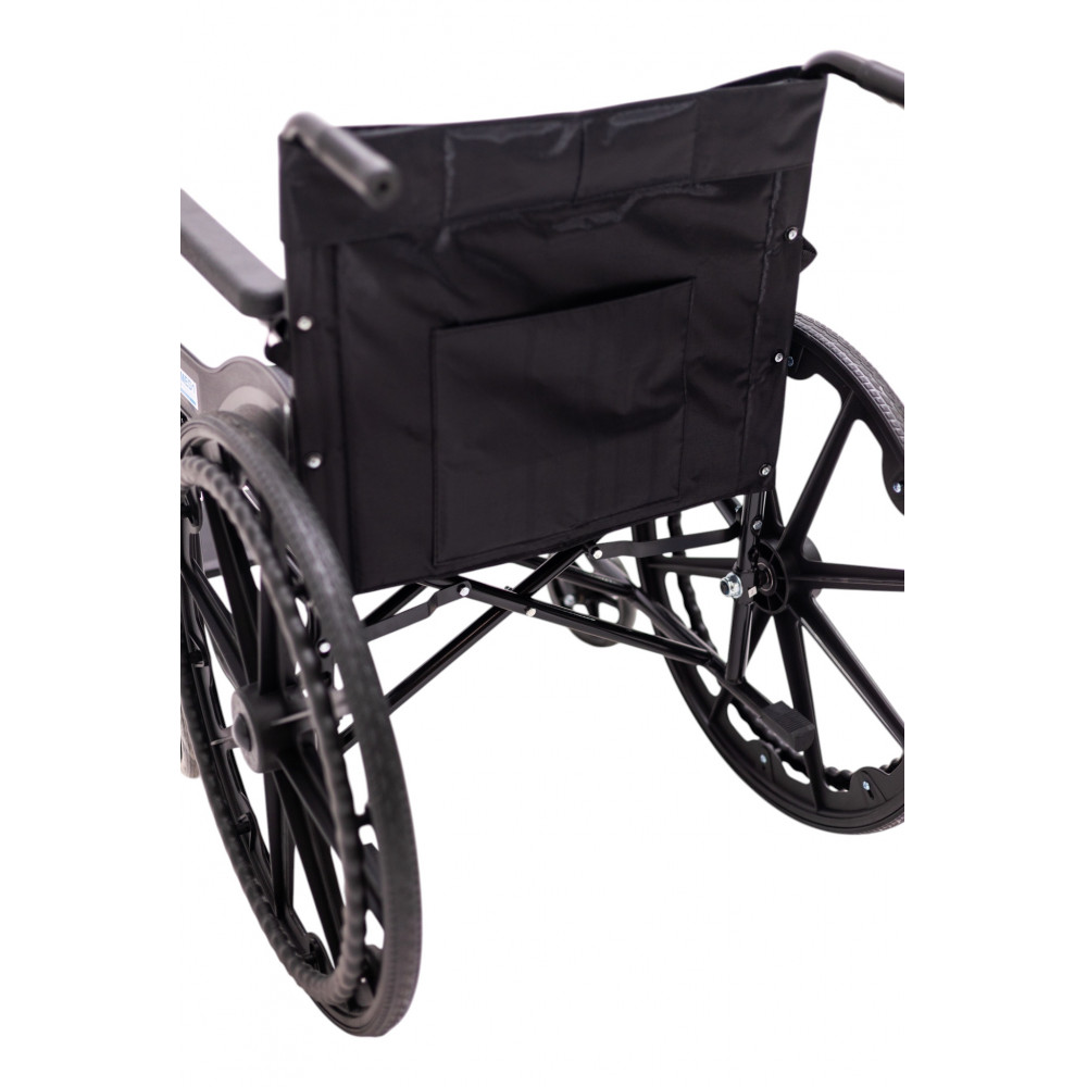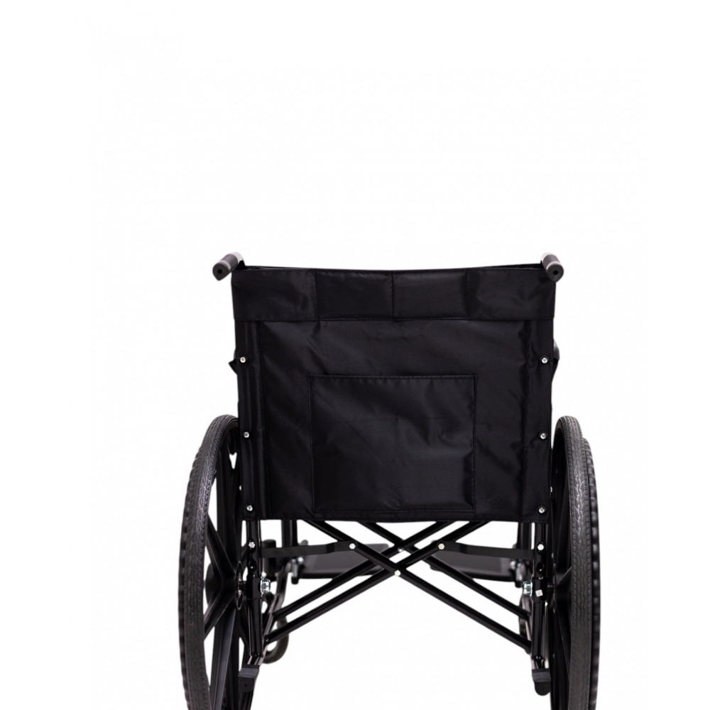 Большие задние колеса с ободами позволяют пользователю самостоятельно передвигаться, а передние поворотные колеса обеспечивают маневренность в помещении.