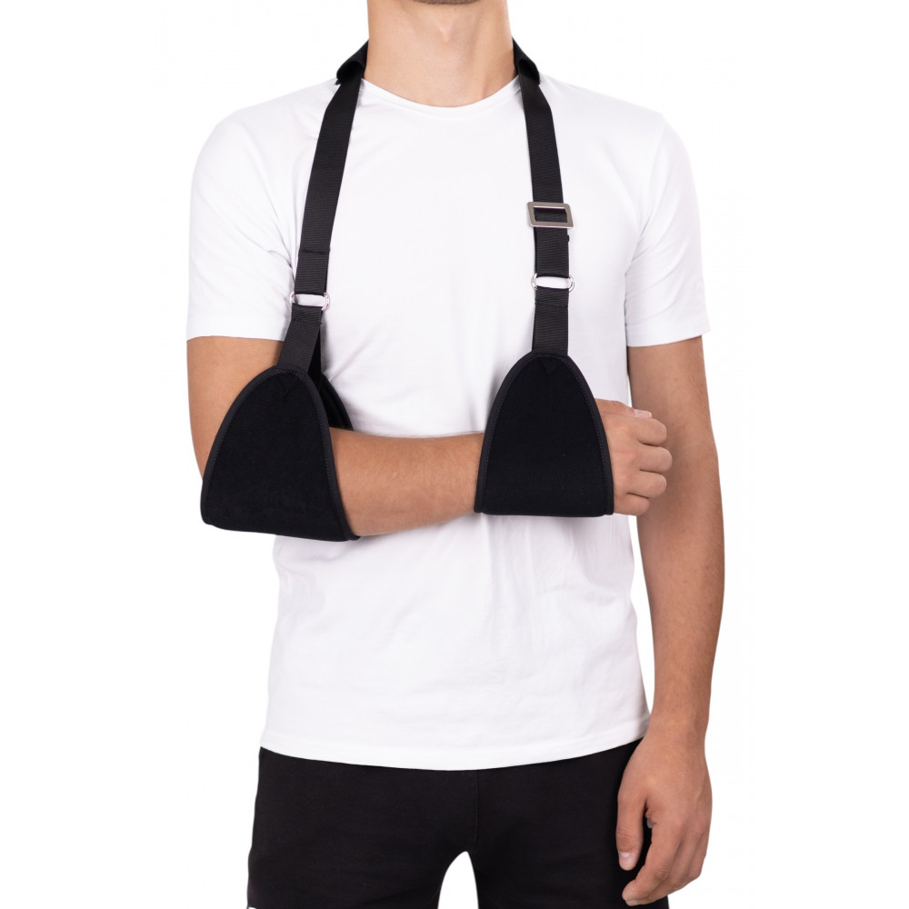 Бандаж обеспечивает фиксацию верхней конечности, надёжно удерживая её в физиологически правильном положении. Регулировка ремней позволяет точно настроить высоту, чтобы снять напряжение с повреждённых тканей и ускорить процесс восстановления. Это способствует уменьшению болевого синдрома и помогает избежать осложнений.