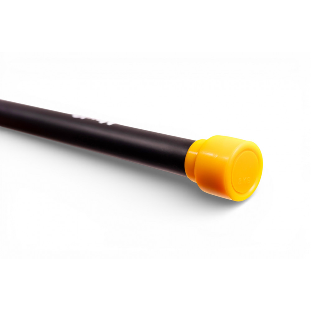 Гімнастична палиця (бодібар) 3 кг MaxIQ-MD1127 — порівняно простий спортивний інвентар, займає проміжне місце між гантелями та штангою.MaxIQ-MD1127 являє собою гімнастичну палицю з міцного металу покриту неопреном з гумовими гранатами (набалдашниками) на кінцях. Перевага бодібарів перед гантелями та штангами полягає в їх конструкції: бодібар менш громіздкі, зі зручним нековзним неопреновим покриттям в області хвату.