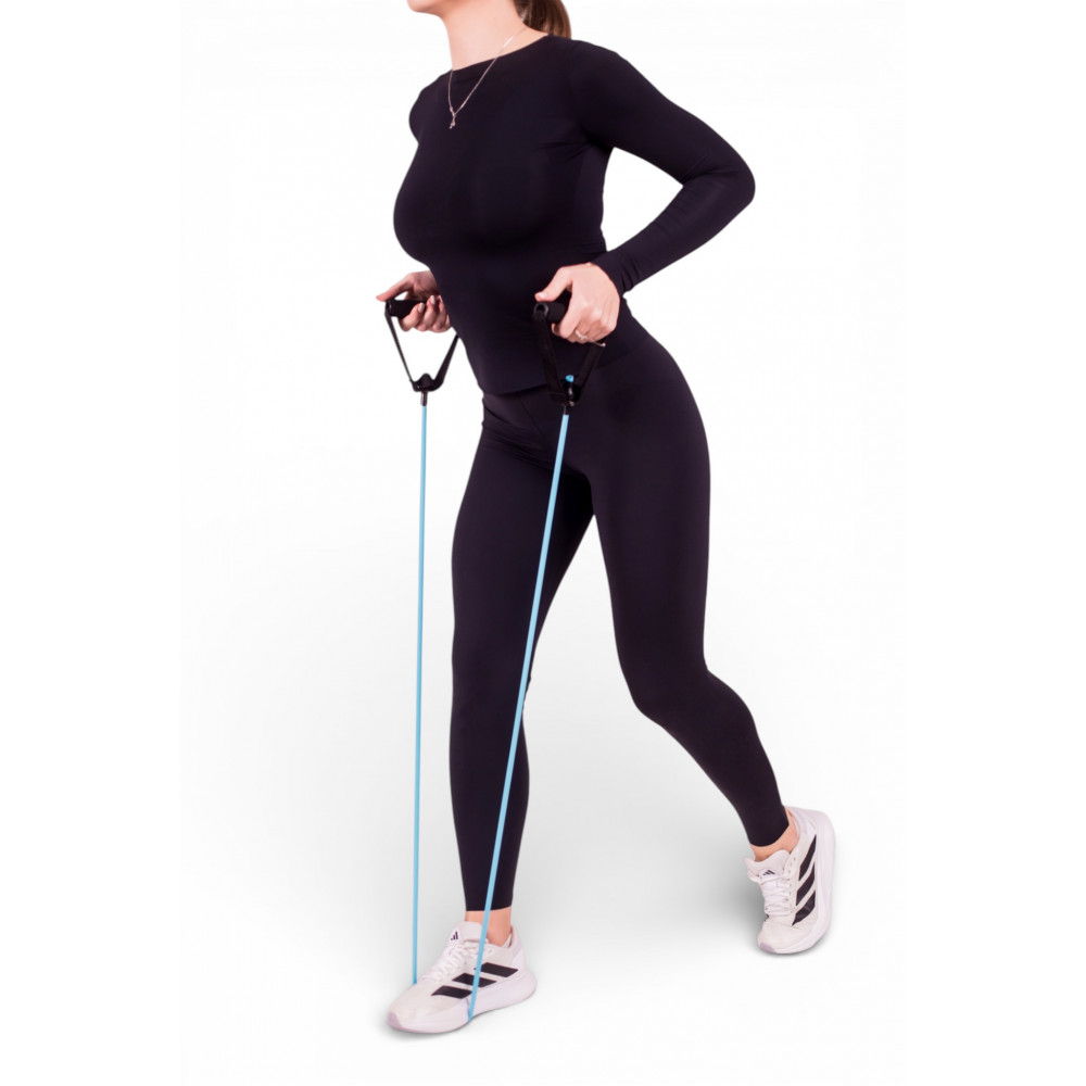 Еспандер трубчастий з ручками, рівень опору 2 MaxIQ-MD1306 цей еспандер є універсальним інструментом для фітнесу, який дозволяє виконувати широкий спектр вправ на різні групи м'язів, включаючи біцепси, трицепси, спину та сідниці. Його конструкція з ручками дозволяє виконувати безліч вправ для верхньої та нижньої частини тіла.